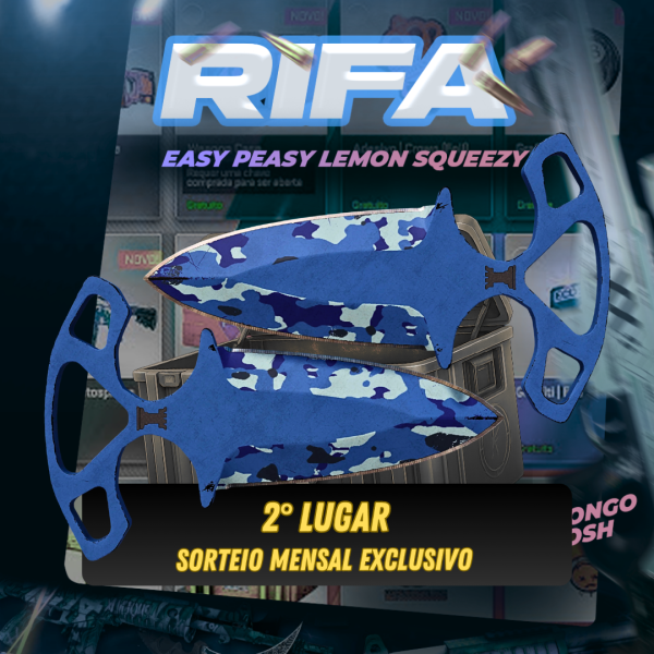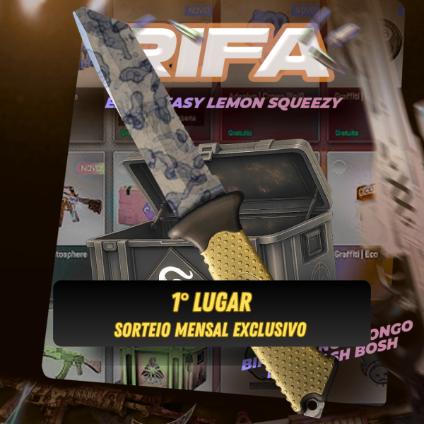 1° sorteio: Ursus Knife | Stained (MW) - R$ 740,002° sorteio: Shadow Daggers | Bright Water (FT) - R$ 375,00